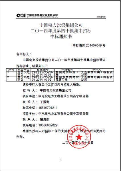 熱烈祝賀我公司于榮中中電投西寧火電廠及寧夏中衛(wèi)熱電廠鋼內(nèi)筒防腐工程標(biāo)段!